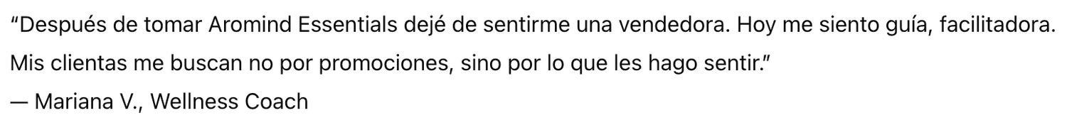Una experiencia online diseñada para mujeres que ya venden aceites esenciales y quieren integrar mindfulness y aromahealing para diferenciarse, educar con propósito y generar ingresos con autenticidad.